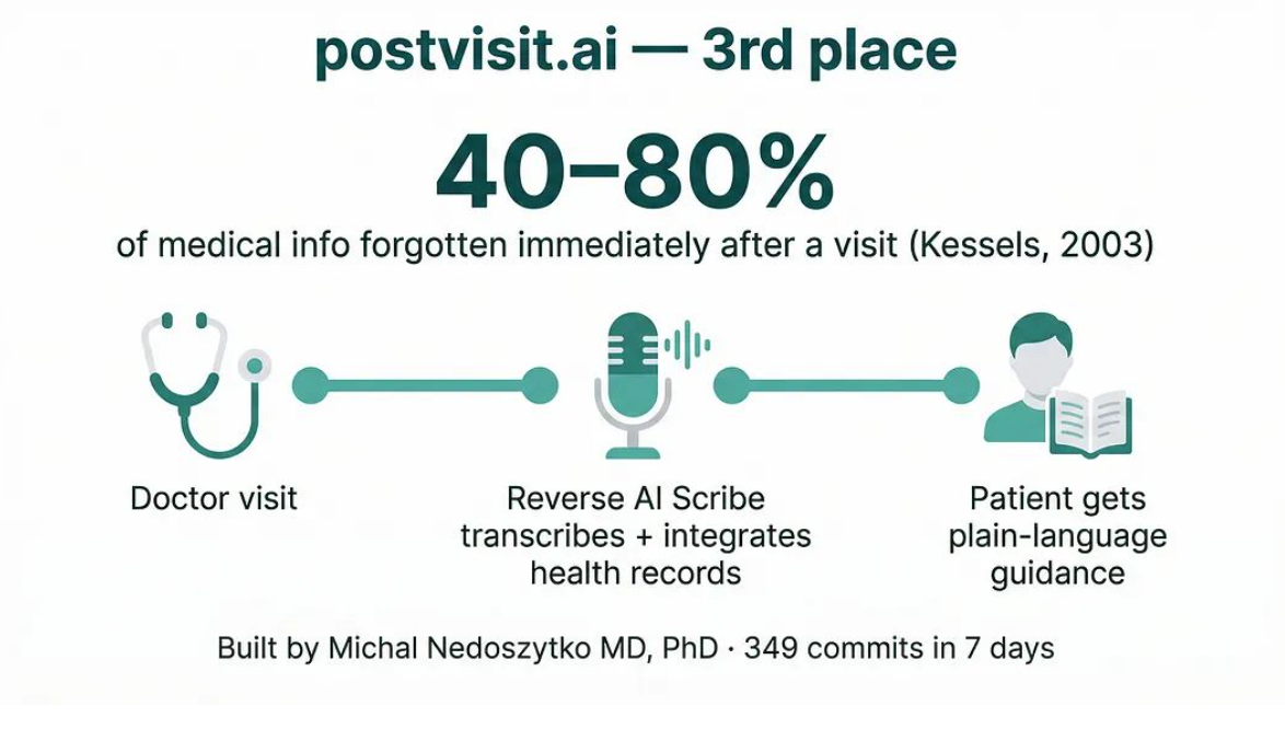 Michał Nedoszytko is a Brussels-based cardiologist who has spent 20 years building healthcare software alongside his medical practice. His previous project, Previsit.AI, is an AI patient intake system deployed in Belgium, Greece, and Poland. But the product he has really wanted to build for the past two years is its counterpart: what happens after the appointment. "I've done thousands of procedures in the cath lab," he says. "But the real struggle happens the moment you leave the room."