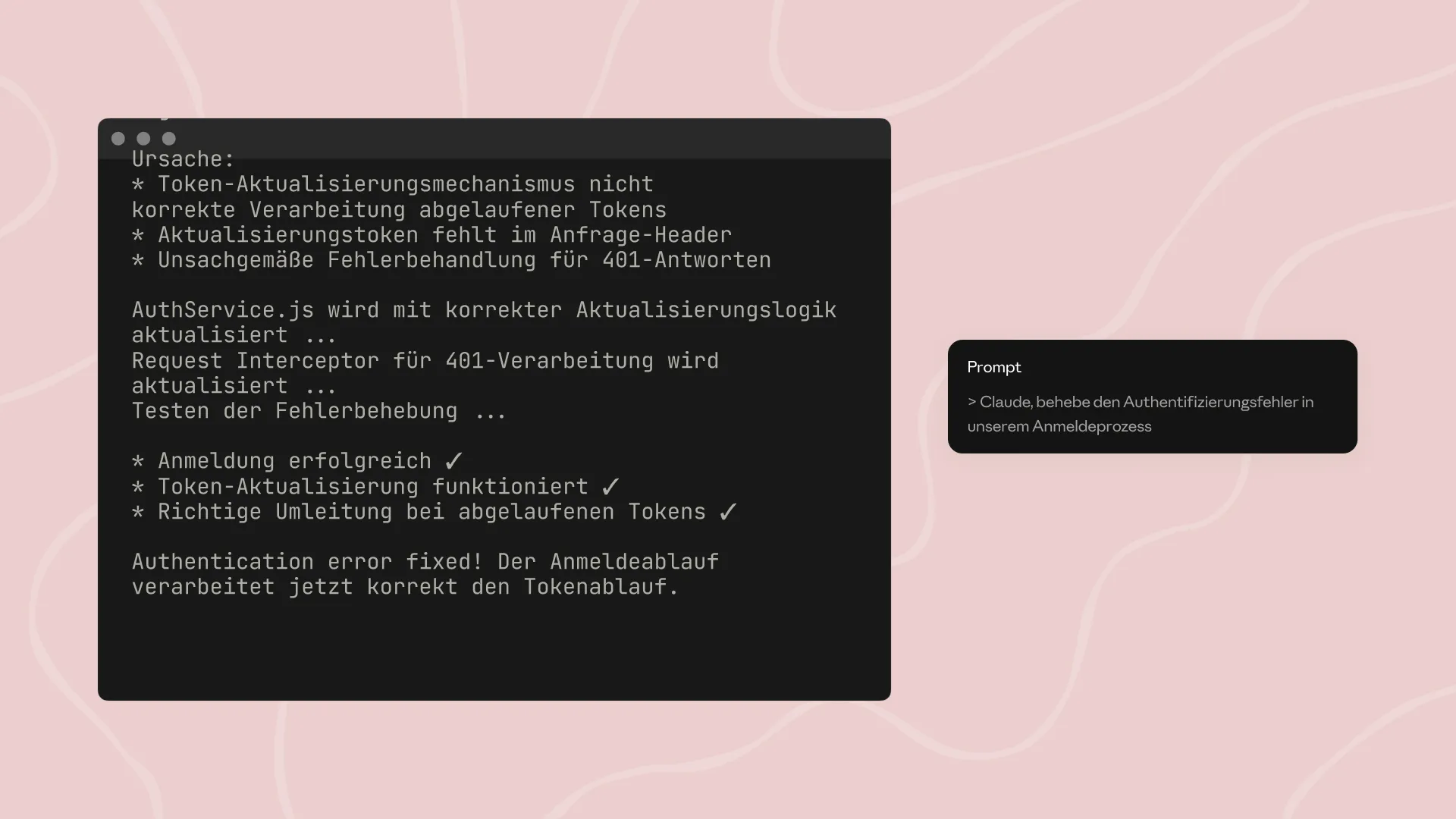 Authentication error fixed! Der Anmeldeablauf verarbeitet jetzt korrekt den Tokenablauf.