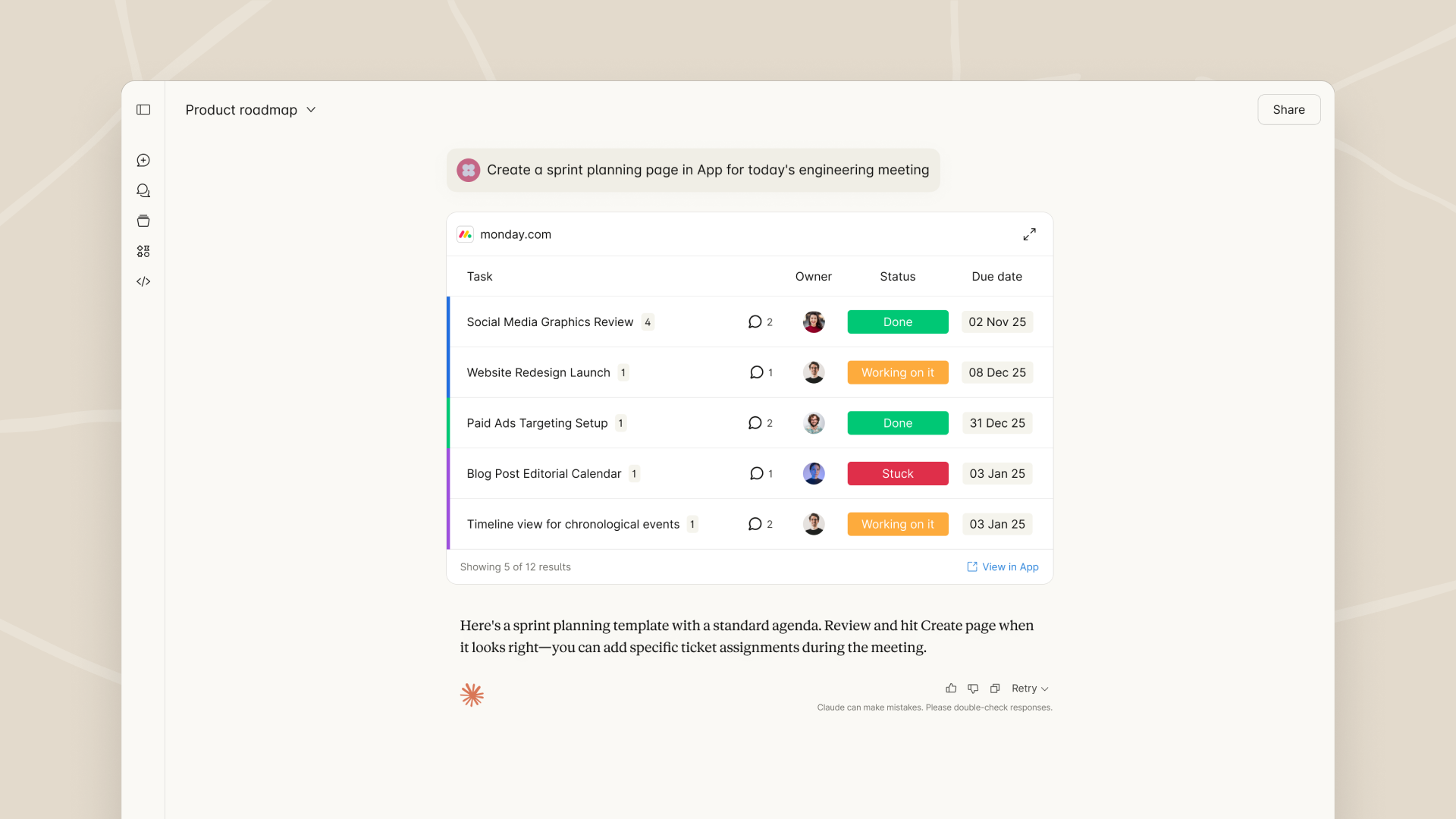 Créer un nouveau tableau pour l'événement de lancement annuel et ajouter les tâches et les colonnes pour planifier et gérer un événement de lancement réussi. La première option doit être « Date et lieu sécurisés ».