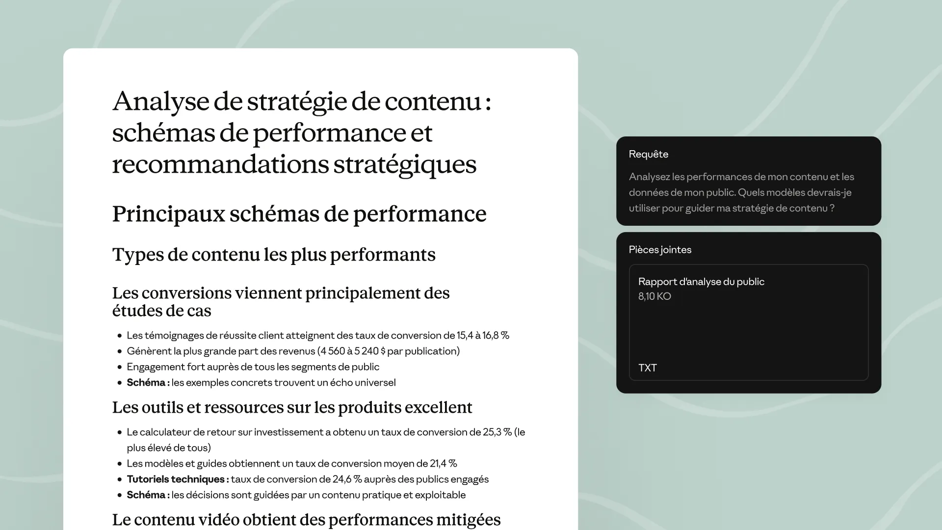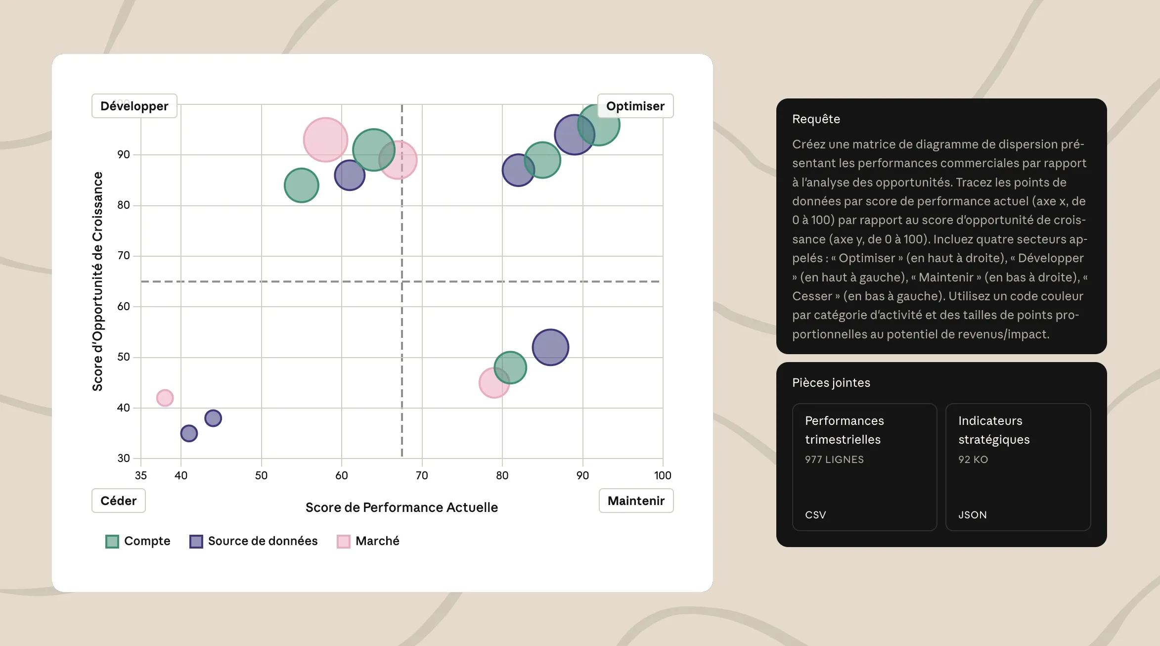 Lancez des fonctionnalités, effectuez des analyses, publiez du contenu et plus encore avec Claude.