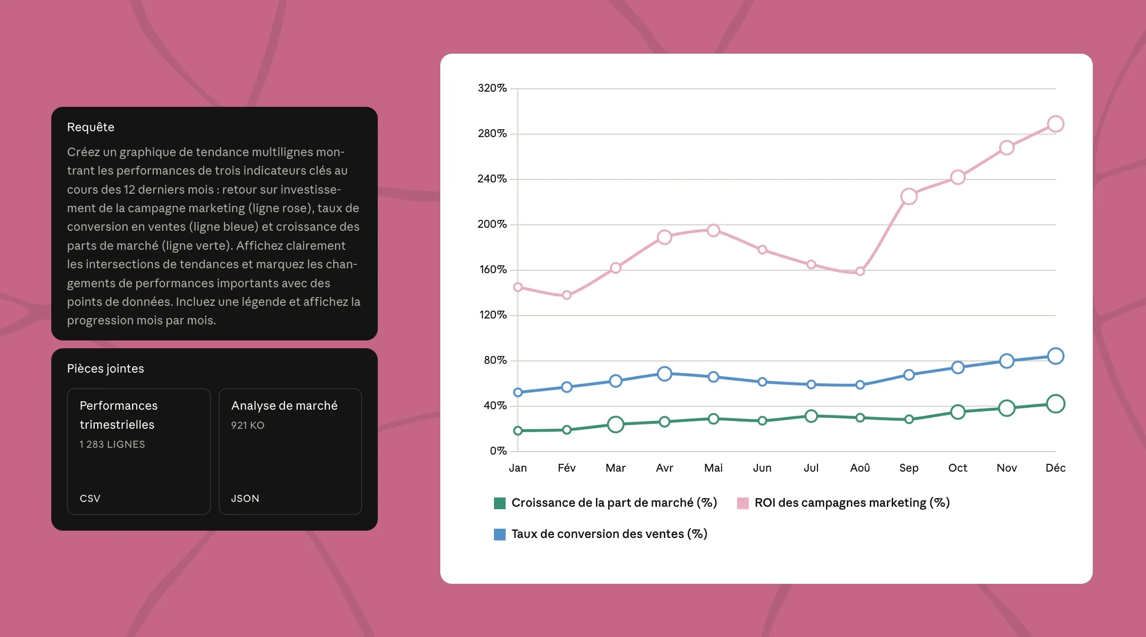 Créez du contenu attrayant et créez des tableaux de bord de campagne dans les applications Claude.