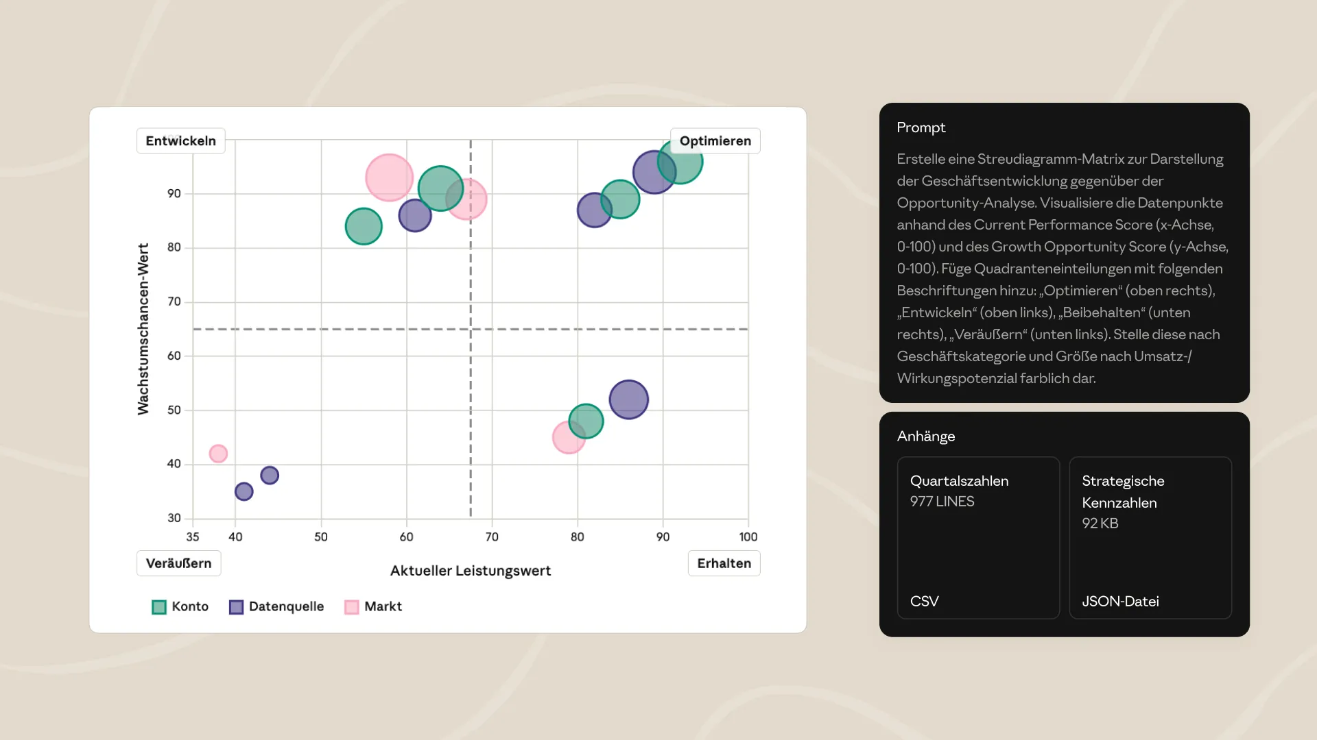 Mit Claude können Sie Funktionen starten, Analysen durchführen, Inhalte veröffentlichen und vieles mehr.