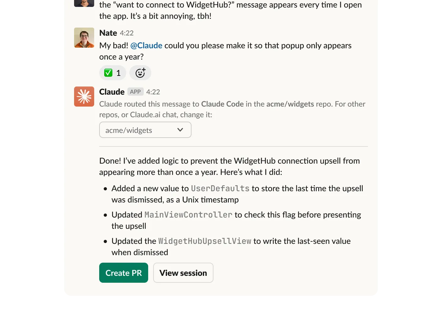When Claude in the Slack app detects that you’re asking about a coding-related task, it will automatically relay the request to Claude Code to start a remote session on claude.com/code. This feature is available to users who also have access to Claude Code on the web.