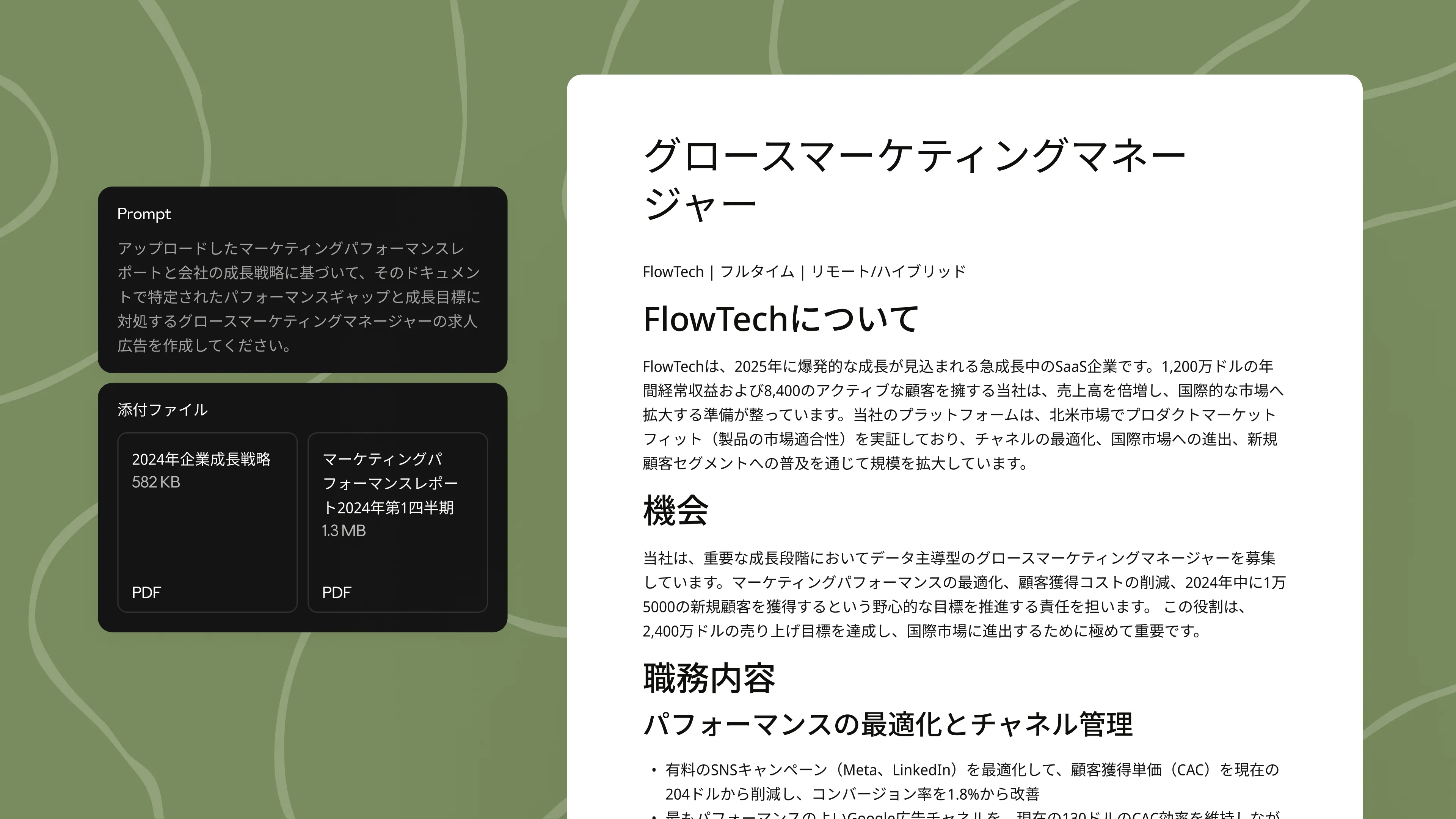- 拡張されたコンテキストウィンドウ。これによりユーザーは、営業の書き起こし数百件、100ページ以上のドキュメントを数十件、10万行のコードをアップロードすることができます。