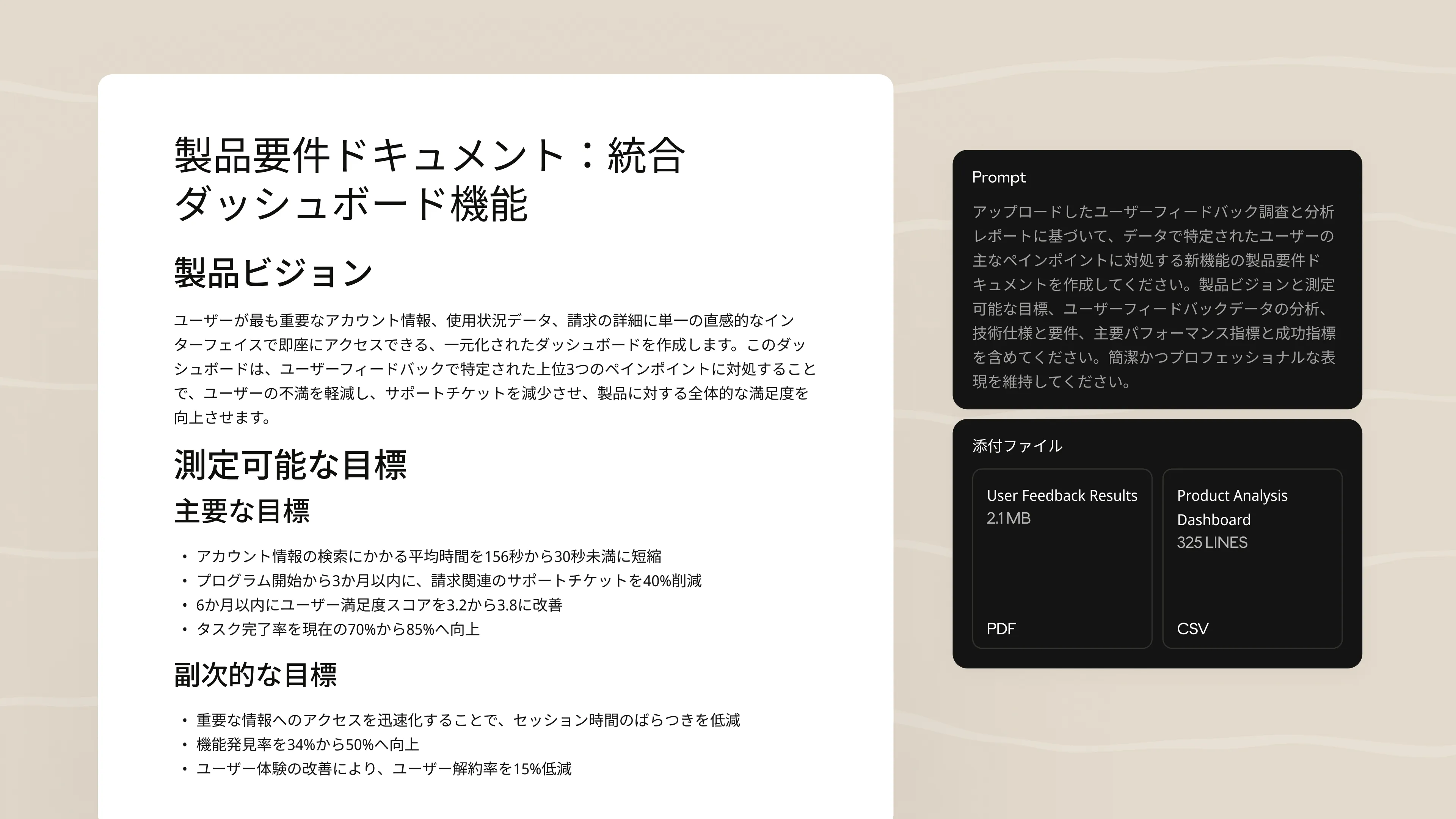 ユーザー向けの体験や新製品をClaudeを使用して作成したい開発者の方は、Anthropic APIが最適です。各種APIプランの詳細については、当社の営業チームまでお問い合わせください。利用開始には、当社の開発者向けドキュメントをご覧ください。