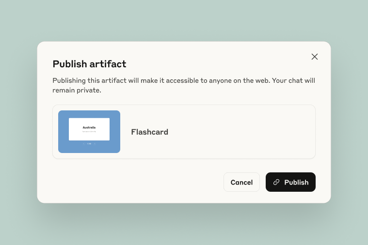 All you need to do is click the “Publish” button in the top right hand corner of the artifact menu and distribute the link.